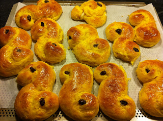 Och några hederliga vanliga lussekatter och en liten gubbe längts bak på plåten, påminner nästan lite om pappsen.. hi hi hi hi..